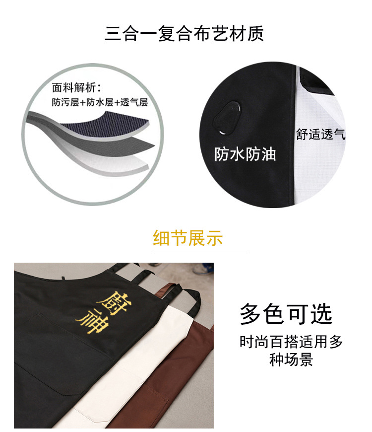 • 圍裙定制logo印字|廚房餐廳工作服定做|家用純棉圍裙