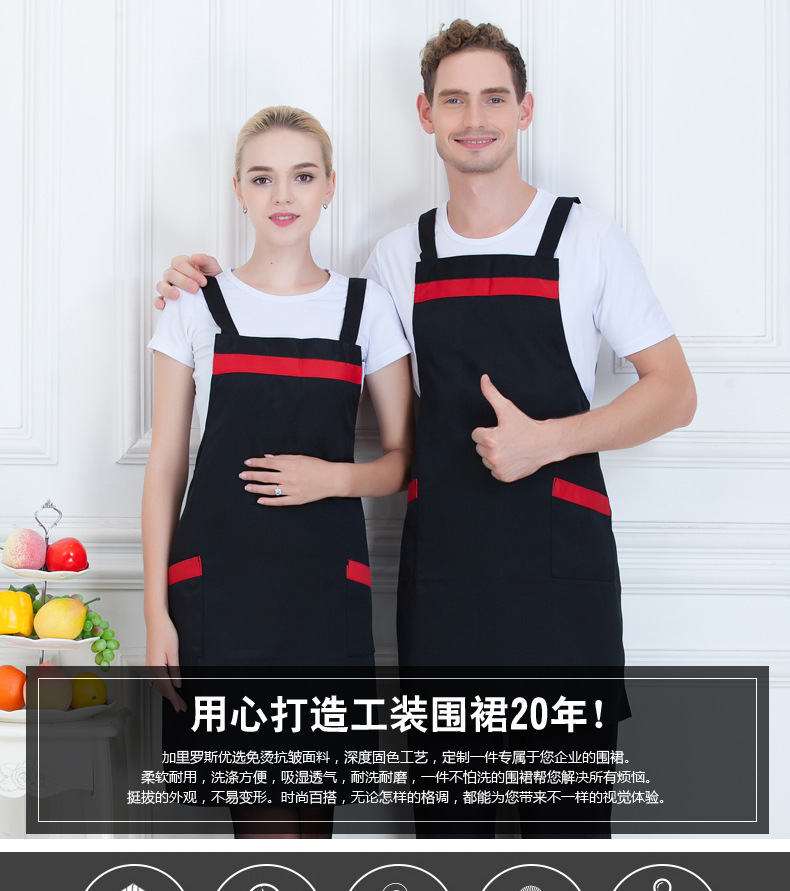 圍裙定制logo印字|廚房餐廳工作服定做|家用純棉圍裙