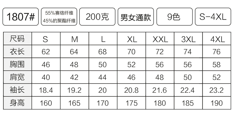 尺碼: S\M\L\XL\2XL\3XL\4XL