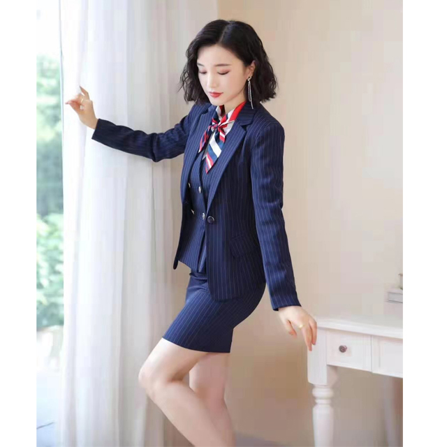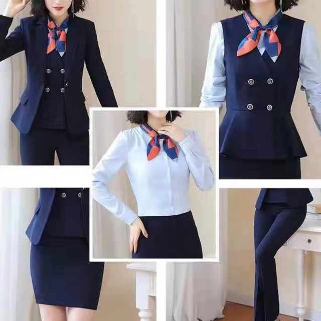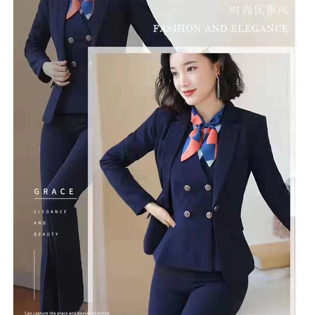 女士職業(yè)裝深藍(lán)褲裝裙裝春秋冬款商務(wù)套裝女款前臺(tái)酒店工作服珠寶店正裝